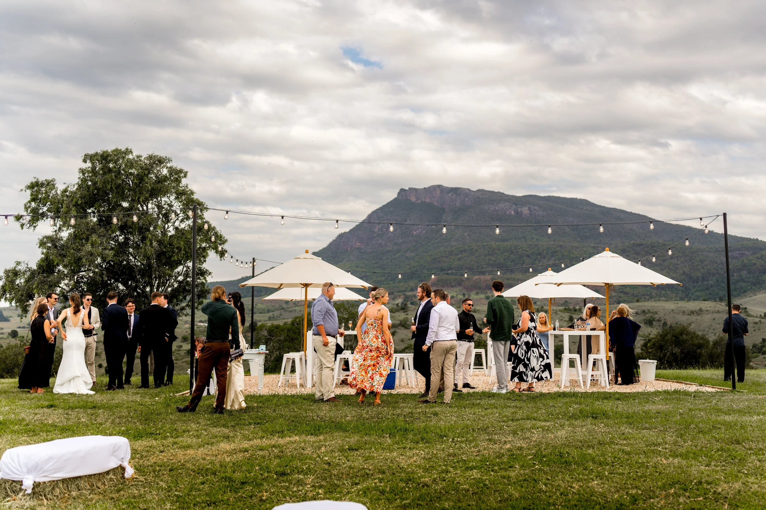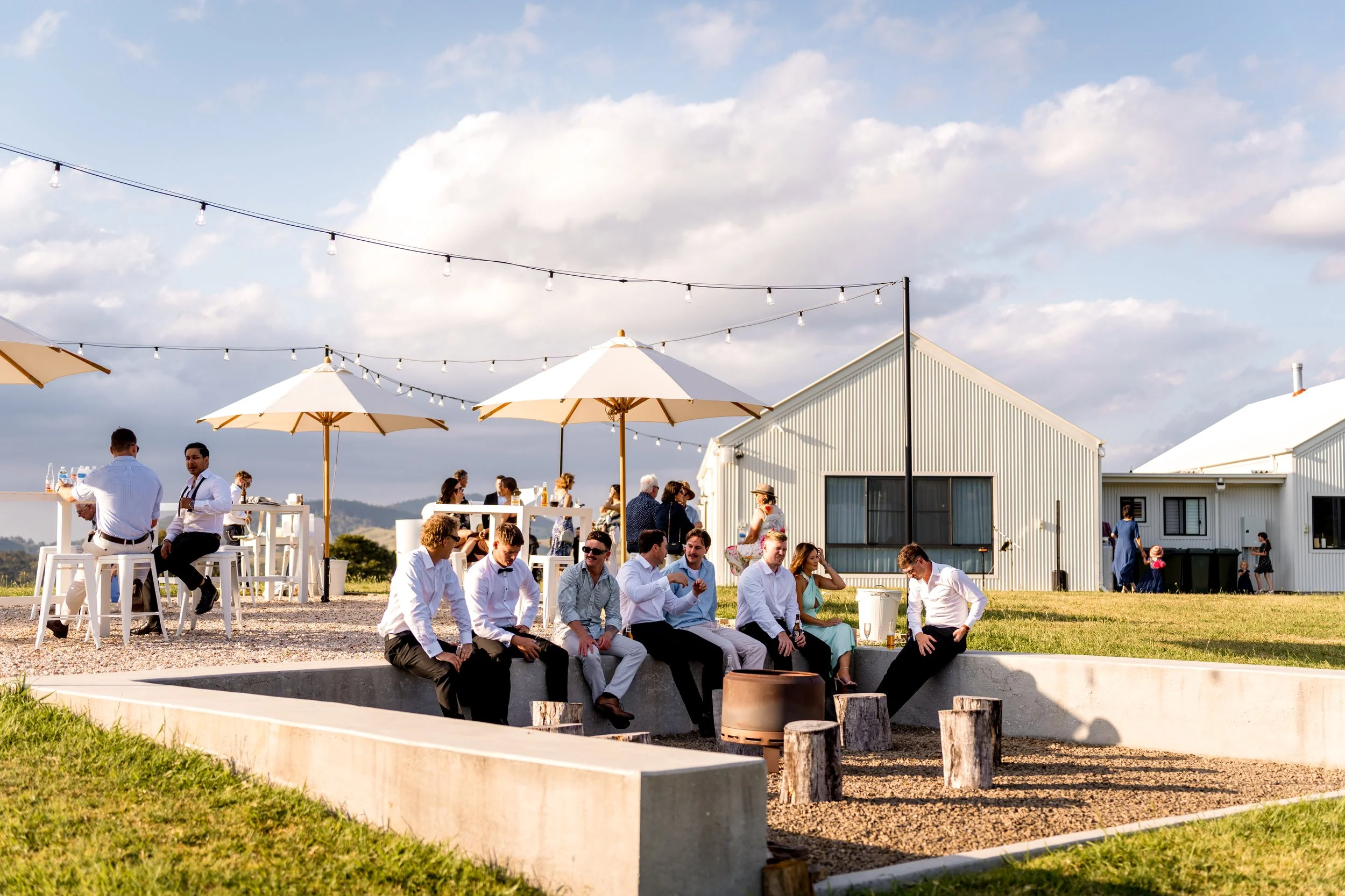 THE COCKTAIL AREA IS WHERE YOUR GUESTS CAN MINGLE AND ENJOY DRINKS DURING THE TRANSITION FROM CEREMONY TO RECEPTION, LIT BY WARM FESTOON LIGHTS. OVERLOOKING THE BREATHTAKING VIEWS OF MOUNT MAROON, THIS SPACE IS PERFECT FOR AN OUTDOOR COCKTAIL HOUR OR CASUAL GATHERING PRE-CEREMONY. WHETHER IT’S BY THE FIREPIT AT SUNSET OR UNDER THE STARS, THE ATMOSPHERE HERE SETS THE TONE FOR A WARM AND UNFORGETTABLE GUEST EXPERIENCE. PHOTOS BY @ASHHUGHESPHOTOGRAPHY
